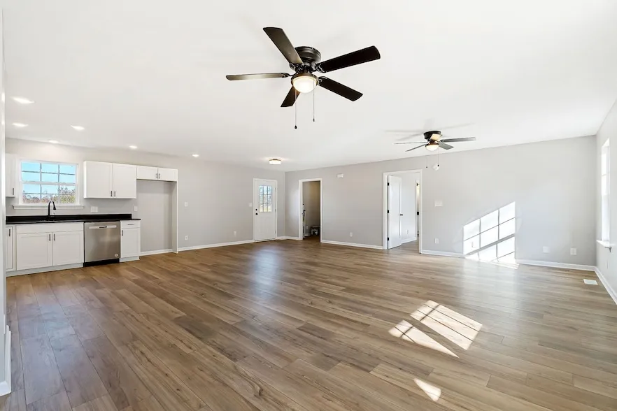 Step into this beautifully updated home featuring new floors, modern cabinets, leathered granite countertops, and fresh paint throughout. The open-concept design offers a spacious layout with a split floorplan, ensuring privacy and comfort. The large primary suite includes a walk-in closet for ample storage. Enjoy peaceful views of farmland from the covered front porch, and appreciate the privacy of the corner lot. With new appliances included, this home is move-in ready and waiting for you. Schedule a tour today!