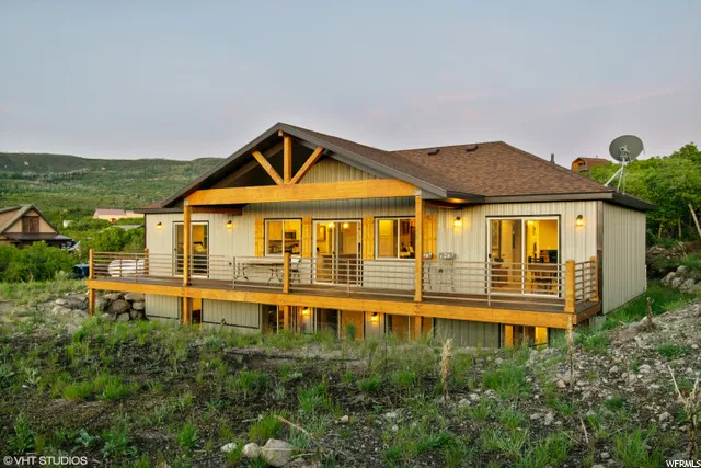 Enjoy gorgeous mountain views from this custom-built rustic mountain home! Featuring two separate living quarters, upstairs and down, master suites & kitchens on each level with walkout basement. Tasteful finishes include granite counters, stainless appliances, travertine and tile baths with custom vanities, beautiful flooring, spacious 2-car garage, trex decking, plenty of storage, and more! Situated on one full acre lot on a private, quiet cul-de-sac! Take in the fresh mountain air, enjoy ample wildlife, breathtaking sunsets and peaceful serenity. Easy, convenient access! Enjoy ATV'ing, fishing, snowmobiling, wildlife, golf, hiking, hunting, skiing with all the amenities of Park City & Heber Valley nearby.