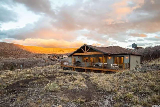 Incredible mid-mountain custom-built rustic home with tasteful finishes including granite counters, stainless appliances, gorgeous travertine, custom bathroom vanities, beautiful flooring, spacious 2-car garage, Trex decking, plenty of storage, and more! Ideally located on a beautiful acre lot in a nice, quiet cul-de-sac with awesome mountain views offering easy, convenient year-round access. Experience ample wildlife, breathtaking sunsets and peaceful serenity. This home features a walkout basement with two separate living quarters including master suites, kitchens and laundry rooms on each level. Enjoy ATV'ing, fishing, epic snowmobiling, unbelievable wildlife, world-class golfing & skiing, hiking, hunting with all the amenities of Park City & Heber Valley nearby.