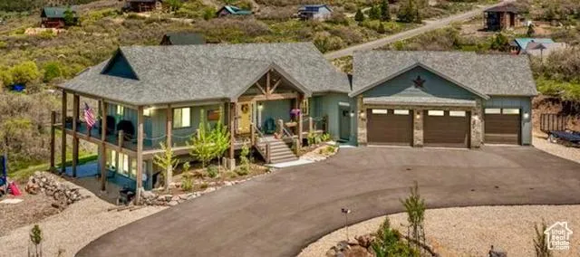 Beautiful new custom-built home with 360 views in the desirable, gated mountain community of Timber Lakes. This mid-mountain location offers privacy, easy access and unbelievable unobstructed views! Tastefully designed with every detail in mind, this IMMACULATE home offers comfortable single-level living at its finest year-round and is conveniently only minutes from downtown Heber City. Enjoy beautiful high-end finishes throughout the entire home with vaulted ceilings and incredible natural light. Large energy-efficient windows with transom windows above amplify the amazing views. The spacious gourmet kitchen includes gorgeous granite countertops & backsplash, double ovens, farmhouse sink, stainless steel low-energy appliances (still under warranty), custom soft-close cabinets and plenty of storage. The expansive wrap-around deck is great for entertaining, and the large walkout basement with blackout shades allows plenty of room for guests. The luxurious master suite features a relaxing deep soaker tub, a walk-in shower with a rainfall shower head and a large walk-in closet. This high energy-efficient home features extra insulation for added warmth and comfort, energy-efficient lighting with custom fixtures, and ample electrical outlets and lights. Backup generator with surge suppressor and tankless water heater ensure modern conveniences. The 1000-gallon buried propane tank and water softener add to the home's appeal. The paved driveway, and extra storage unit (8x12x13) provide practicality. The oversized 3-car garage, with windows for passive winter heat and wired for electric units, is ideal for mountain living! Huge plus - 10 degrees cooler in Summer and NO winter inversion! Surrounded by recreational activities right at your fingertips including, world-class golf, phenomenal skiing, epic snowmobiling, hunting, hiking, mountain biking, ATV-ing and more! Only 55 minutes to the SLC airport and just minutes from all the wonderful amenities of the Heber Valley & Park City! School bus pick up at entrance. Experience the GOOD LIFE with vast mountain views, unbelievable wildlife and wonderful neighbors. This mountain cottage has it all!
