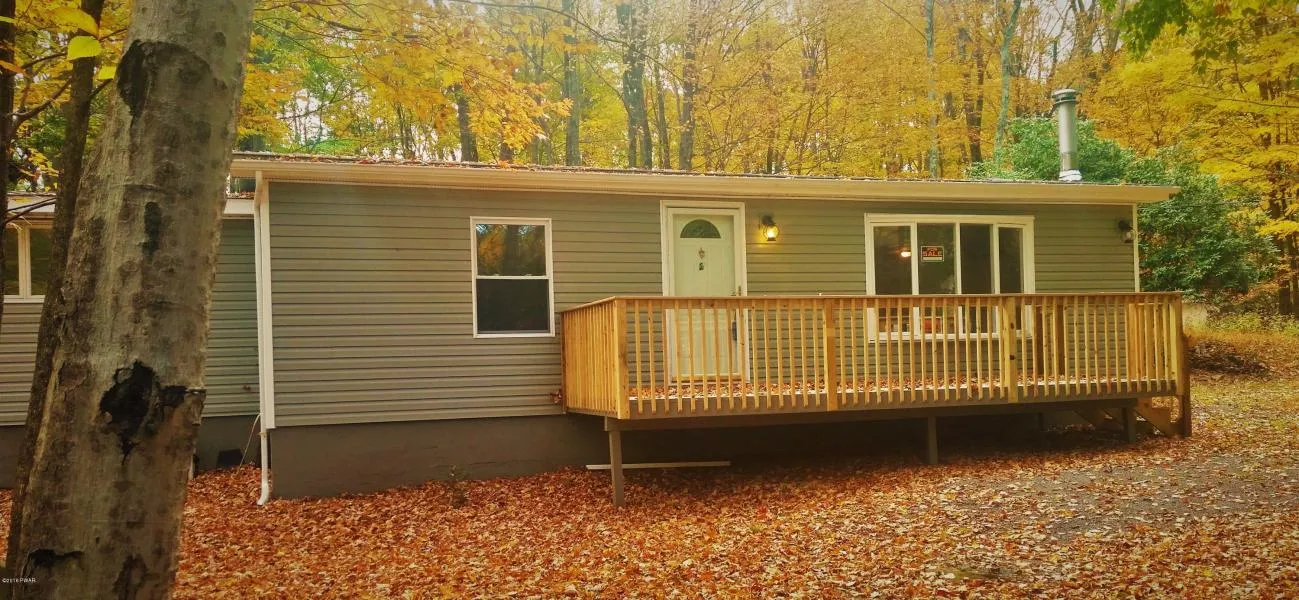 Full time, Rental Or Vacation Get-A-Way.Your Choice. This Totally Renovated Home (inside and out) Features 2 Bedrooms, 2 Baths, Kitchen, Dining Area With Sliding Glass Doors to a 16x12 Screened Deck, Laminate hardwood floor throughout the home, wood burning stove in Living Room, Master bedroom with bath and private entrance to Deck, Air conditioning, Large Front Deck and Super Sized 700+ square foot Back Deck. All this on a Nice level private lot. Paupackan Lake Estates features a Private Sandy Beach for swimming, 250 acre Lake for fishing, Playground Area, Basket Ball Court And Picnic Area... . All only minutes to town and Lake Wallenpaupack boat access.