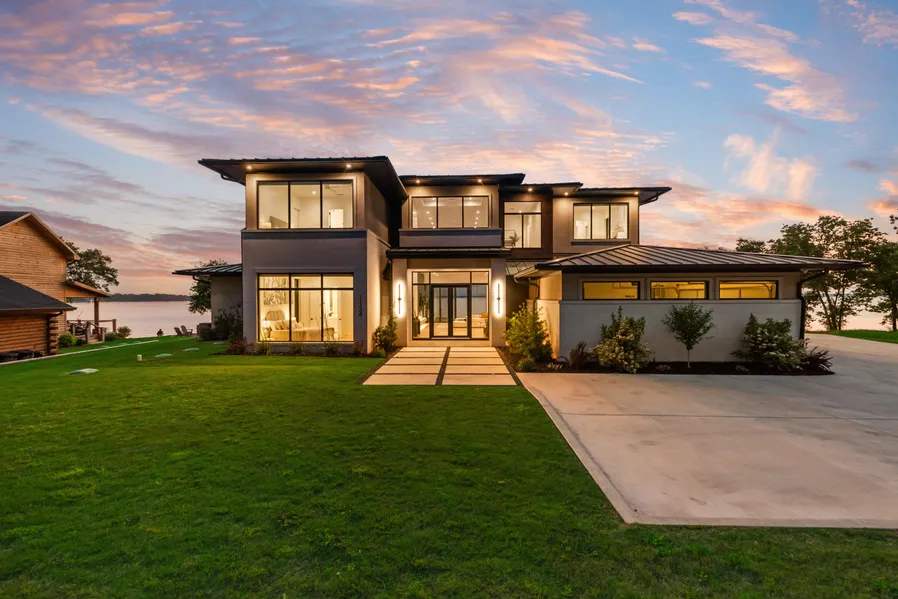 Welcome to the ultimate blend of contemporary luxury living and smart investingthis stunning lakefront estate isnt just a dream home, its also a high-income producing *5-star* luxury short-term rental, with an impressive rental history. Even better? The sellers are ready to transfer the thriving rental business to the new owners, making this an incredible turnkey opportunity. From the moment you step through the front door, the craftsmanship and high-end finishes speak for themselves. The expansive main living room wows with soaring vaulted ceilings and a dramatic gas fireplace filled with sparkling glass rockperfect for cozy nights in. The chefs gourmet kitchen is a true showpiece, complete with a 6-burner gas range, custom cabinetry, and top-of-the-line appliances. With 5 bedrooms, each with ensuite access, 4 full baths, and 3 half baths, the home is designed for large groups. The primary suite is a sanctuary with floor to ceiling lake views and a luxurious ensuite bath with 2 custom designed closets (one doubles as a safe room). A spacious laundry room, 2 more utility areas, and a bonus exercise studio round out the amenities. Upstairs, guests will love the family room with its own balcony, dry bar, drink fridge, and ice makerideal for winding down the day. There's also game room with breathtaking lake views, making this home just as fun as it is relaxing.Step outside to paradise: a large covered patio with built-in grill, mosquito mister, and ceiling fans offers a seamless indoor-outdoor experience. Just beyond lies the infinity pool with a built-in fire pit feature and a jacuzzi spapure lakeside luxury. The boathouse comes equipped with a boat lift & jet ski lifts, ready for adventure at a moments notice. A 2-car garage stores your vehicles, while a separate garage is perfect for storing lake toys & lawn equipment. Whether youre looking for a luxurious personal getaway, a high-end vacation rental, or the best of both worlds, this property has it all.