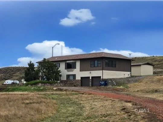Escape to the serenity of country living with this fantastic property located just 5 miles from the Kinsey turn-off. Spanning over 20 acres, this home offers a perfect blend of space and comfort and beautiful views no matter the season. Enjoy the enormous living room that flows seamlessly into a spacious dining room, both featuring new flooring. There are two bedrooms and a 3/4 bath conveniently located on the main floor. A large kitchen leads into a practical laundry room, making day-to-day living a breeze. The home features a walk-out basement with additional living space. Downstairs has recently been updated with new flooring and paint. You'll find one bedroom plus two bonus rooms to suit your needs, along with a full bath that includes a luxurious jacuzzi tub. An attached two-car garage complements two detached single-car garages, providing plenty of parking and storage options. Don't miss the chance to own this rare find! Schedule a showing today and imagine the possibilities this property has to offer.