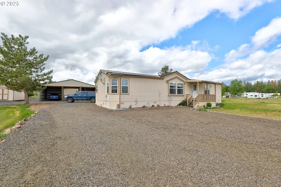 Peaceful Country Living. Welcome to this well-maintained 1997 manufactured home nestled on 1.12 acres in scenic Wamic, OR—just minutes from Pine Meadow Golf Course and the recreational paradise of Pine Hollow Reservoir. This 3-bedroom, 2-bathroom home offers comfortable living in a serene, rural setting. The property is perfectly set up for outdoor enthusiasts and those seeking space, featuring a three-bay carport, multiple storage sheds, and a dedicated RV hookup. With plenty of room for parking and storing your toys, it's ideal for full-time living or a weekend retreat. Enjoy the beauty of Central Oregon with room to breathe, easy access to outdoor adventures, and the convenience of a well-kept home ready for its next chapter.
