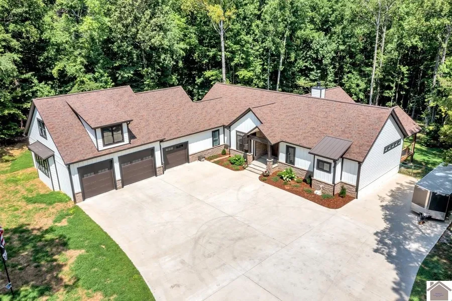 MOTIVATED SELLER! Quality-built custom home, open concept, split floor plan plus multi-purpose bonus areas. Large great room featuring beamed cathedral ceiling and floor-to-ceiling stone woodburning fireplace w/gas starter. A chef’s dream kitchen with 16-foot island, custom cabinets, granite, KitchenAid and Z-line appliances and 6’x12’ walk-in pantry w/custom wood shelving. Primary bedroom with luxury bath features, 2 walk-in closets plus exit to covered 876sf deck spanning entire back of the home w/9-person hot tub. Huge laundry room w/custom cabinets and access outside. Additional features include Carrier Infinity dual-fuel HVAC, 400-amp electric service, recirculating tankless water heater, 1k gal LP tank, 22k Generac whole home generator, encapsulated crawl space, fencing and electric gates. Four+ bay 2,200sf garage w/commercial door openers and cabinets two 220v EV/welder receptacle...