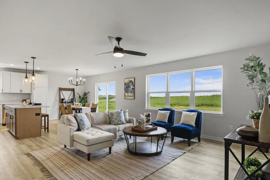 Set on 1.5 peaceful acres in the picturesque Shamrock Estates, this beautifully built farmhouse-style ranch offers a refined escape with easy access to Madison and Janesville. The open-concept floor plan features three spacious bedrooms and two full baths, thoughtfully designed to provide both comfort and sophistication. The primary suite is a true retreat with a luxurious walk-in shower, dual vanities, and a large walk-in closet. A sunlit laundry/mudroom adds everyday convenience, while the expansive lower level—with roughed-in plumbing and an egress window—offers unlimited potential for added living space or entertainment. A three-car garage and room for outbuildings complete the picture. Come home to comfort, space, and simplicity—where every detail is designed to elevate your life!