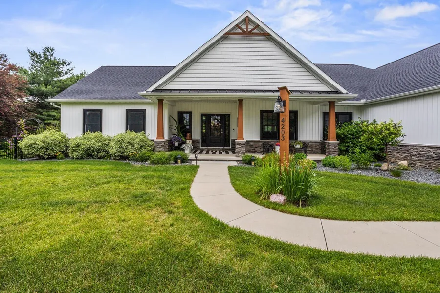 Welcome to this stunning custom-built ranch nestled on a one of a kind private 1-acre lot in one of Champaign's premier subdivisions, Trails at Brittany. Designed with entertaining in mind, this home seamlessly blends elegant indoor spaces with resort-style outdoor living. Step inside to an expansive open floor plan with over 4600 SQ FT of finished space, perfect for gatherings both large and intimate. The heart of the home features a well-appointed custom kitchen that flows into generous dining and living areas, anchored by beautiful finishes, hardwood floors, built-ins, and thoughtful design. The laundry room offers a handy side exterior entrance, ample cabinetry and a sink. An additional mudroom offers more space to keep things tidy and organized with built in bench and coat hooks. There's a bright and cheerful sunporch with an in-ground hot tub, perfect for year round enjoyment. The ...