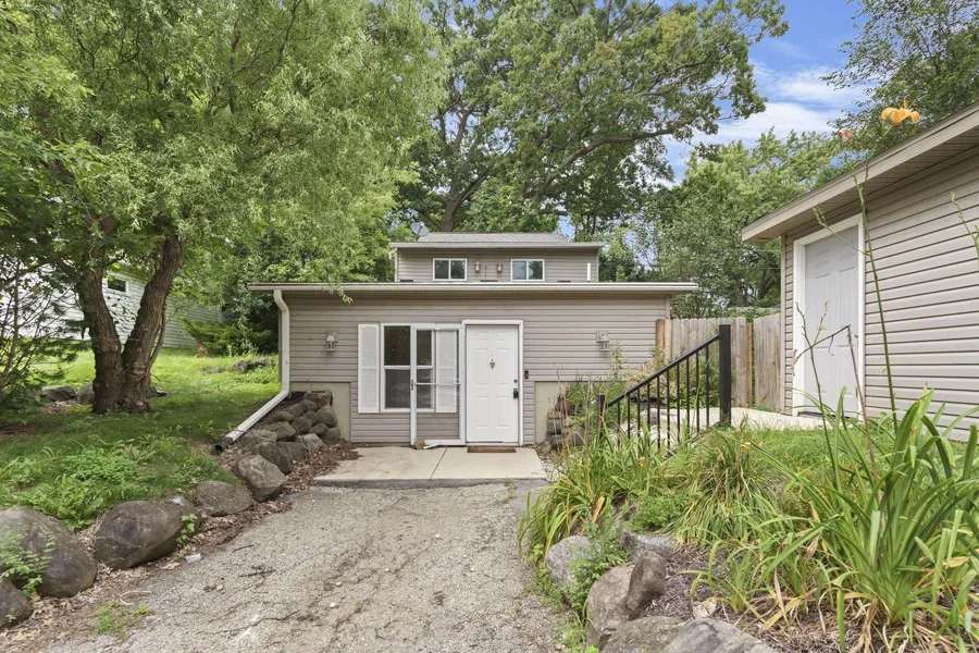 This one-of-a-kind home offers a flexible layout and lush, private setting just steps from the lake. Main level features a bright living area with engineered hardwood floors and a beautiful accent wall including floor to ceiling stone- ready for a fireplace! Kitchen is a home chef's dream with granite countertops, Sub-Zero fridge, and gas Wolf range. Just off the dining/living space, a deck overlooks the fully fenced yard- perfect for morning coffee or evening unwinding. Full bathroom with walk-in, tiled shower & sizeable laundry room round out the level. Head downstairs to find two comfortable bedrooms and a second full bathroom, creating a quiet and private retreat for sleeping, guests, or working from home. Large, detached two-stall garage provides storage, workspace, or room for toys!