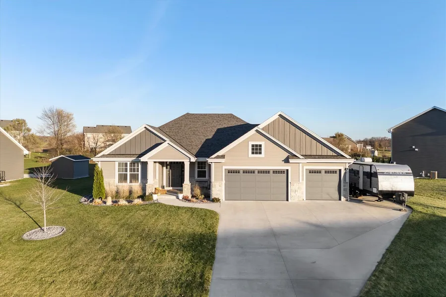 Nestled in the serene Weretta Woods community, this 4-bedroom, 3-bath ranch home offers the perfect blend of comfort, style, and functionality. The main floor features a welcoming living room with a cozy gas fireplace, a bright kitchen and dining area accented by luxury vinyl plank flooring, a private primary suite, two additional bedrooms, and convenient main-floor laundry. The expansive lower level provides exceptional versatility with a large rec room, a fourth bedroom with an egress slider, a bar, full bathroom, office, and exercise room. Completing the home is a spacious 3-car attached garage with deep storage for added convenience. Seller has independent home inspection report on file.