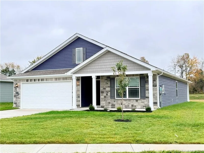 Welcome home to the Chatham plan by D. R. Horton in beautiful Champions Run, where classic comfort meets modern convenience in scenic Memphis, IN. This ranch-style home features an open-concept layout, designed for both entertaining and everyday ease. The kitchen features stainless steel appliances, an oversized island, and luxury vinyl plank flooring that flows throughout the main living areas. The spacious layout and abundant natural light create a bright, airy feel. The private primary suite includes a spacious walk-in closet and attached bath, while 3 additional bedrooms offer flexibility for guests or a home office. Just minutes from I-65, enjoy peaceful living with quick access to downtown Jeffersonville or Louisville. Ready to call this home? Call today for a showing! Photos are representative of plan, home may vary as built.