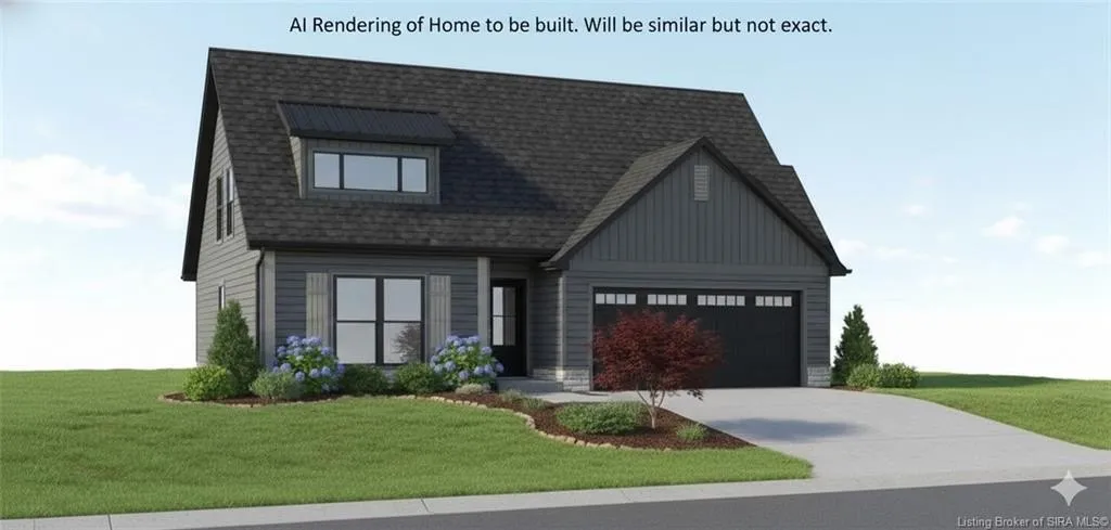 Schuler Homes' Independence Floor plan on a finished WALKOUT lower level! 4 bedrooms, 3 full baths with a wooded back-drop out back! Located in the desirable FAIRVIEW FARM subdivision conveniently located just north of Perry Crossing Rd in Sellersburg giving you easy access to Highway 31 and 60 and Covered Bridge Golf Community. You'll see why this is one of Schuler Homes top selling floor plans. The open floor plan is perfect for entertaining, featuring an in-wall fireplace with shelving on each side, an inviting eat-in kitchen with a corner pantry, tiled backsplash, granite countertops, and an island for more seating. Enjoy stainless steel appliances, pendant lighting, and abundant natural light from large windows. The deck off dining area is perfect for enjoying peaceful evenings outdoors. The master suite offers a serene retreat with dual sinks, a linen closet, and a beautifully tiled shower. The WALKOUT basement provides additional living space with a 4th bedroom, a 3rd bathroom, and a spacious family room, perfect for relaxation or hosting guests, and door to the back patio. Easy access to the mechanical room housing the Energy Efficient Water Heater and Heat Pump, plus the exterior walls are spray foam to help with the energy savings. SMART ENERGY RATED. The home will be ready for you to move into by the end of March/first of April, just in time to start enjoying the great backyard! LOT 208. All measurements and sq. ft. are approximate. If critical, Buyer to verify.