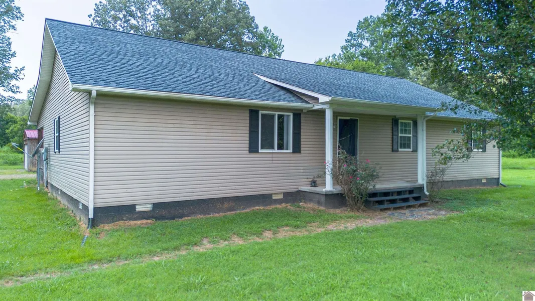Looking for a private, peaceful setting that's still close to town? Located in Calvert City, this spacious 4-bedroom, 2-bath home has so much to offer! You'll love the large rooms throughout, including a massive bonus room perfect for a variety of uses. The great room and kitchen feature beautiful vaulted ceilings, creating an open and inviting atmosphere. Step outside to a generous covered back porch—ideal for entertaining or sitting back and enjoying nature with your morning cup of coffee. Plus, the 12x32 outbuilding gives you plenty of storage space. Sitting on just under an acre of level land, this property offers the space and privacy you’ve been looking for. Come take a look!