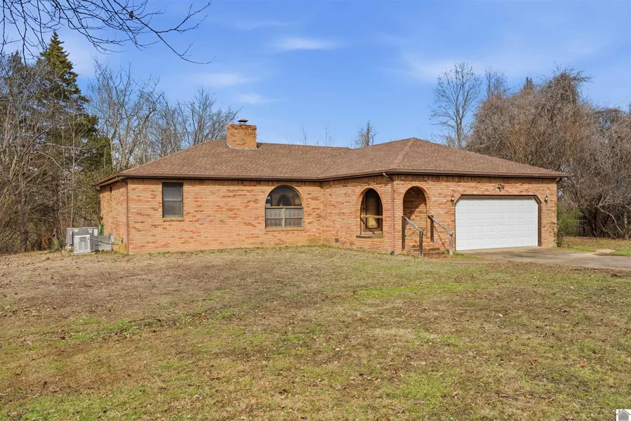 Enjoy peaceful country living in Grand Rivers, KY! This 3-bedroom, 2-bath home offers 1,425 square feet with a split floor plan, open living, dining, and kitchen layout, ideal for everyday living and entertaining. The living area features a wood-stove fireplace for added warmth and charm along with an additional sitting area. The kitchen includes a pantry and dining. A separate laundry room adds convenience and doubles as a mudroom from the attached garage entry. The home is equipped with propane heat and a whole-house generator for efficiency and peace of mind. An attached 2-car garage provides additional storage. Outside on the approximately 22.17 acres, enjoy a detached shop with electric and water, a very large pond with a beach sand area, and what appears to be perimeter fencing, creating a private setting ideal for recreation, hobbies, or animals. Located just minutes from Kentucky...