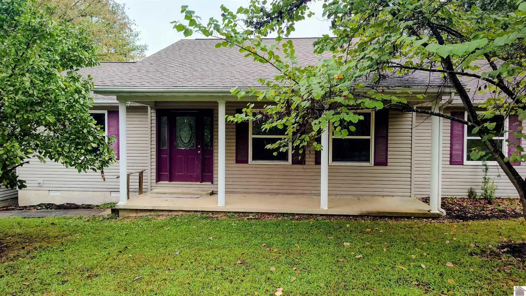 QUIET RETREAT NEAR BUZZARD ROCK MARINA & CUMBERLAND RIVER! Discover this spacious 1776 square foot home located on a peaceful, low-traffic road in Kuttawa, Kentucky. Set on a generous 0.53-acre lot, this property offers ample elbow room and includes a practical 2-car detached garage—ideal for secure parking, storage, or a dedicated workshop area. It’s an easy 2.1 mile drive to the excitement at Buzzard Rock Marina and the beautiful Cumberland River, making recreational outings effortless. The home’s charming exterior features a welcoming covered front porch. This is a fantastic opportunity for a comfortable primary residence or a quiet weekend base in the heart of Lyon County.