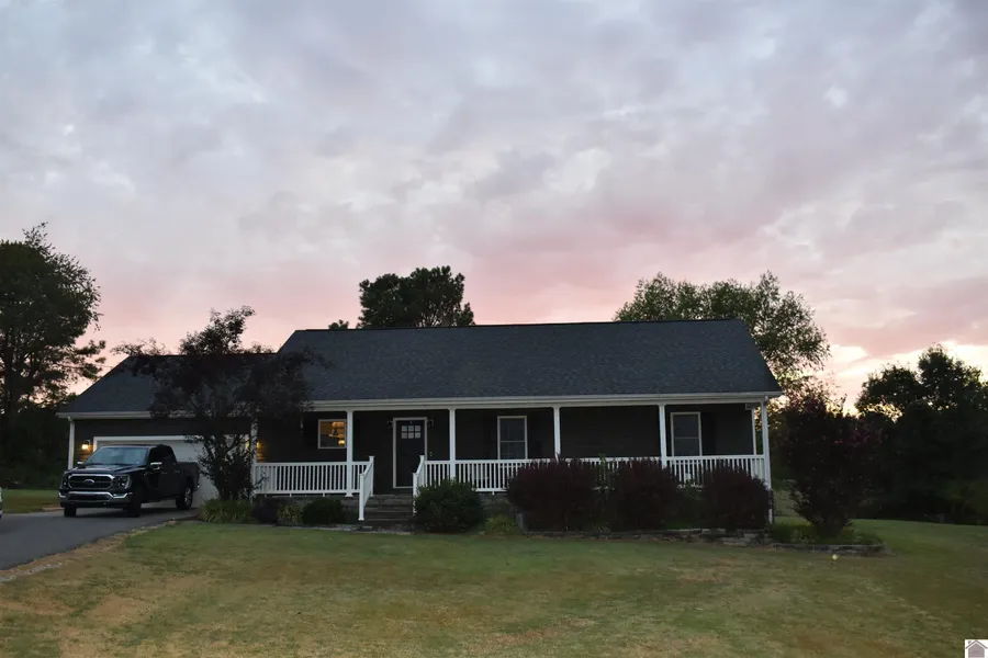 This beautiful 3 bedroom 2 bath home with open floorplan is move-in ready. Sitting on three acres in rural Graves County. Circular paved driveway and large 45 X 36 pole barn with a 45 X 10 loft built in 2015 with metal roof and doors. House was built in 2015 and has recessed lighting throughout. Primary suite is large and features two walk-in closets. Above ground pool with deck. Needs new Owner.