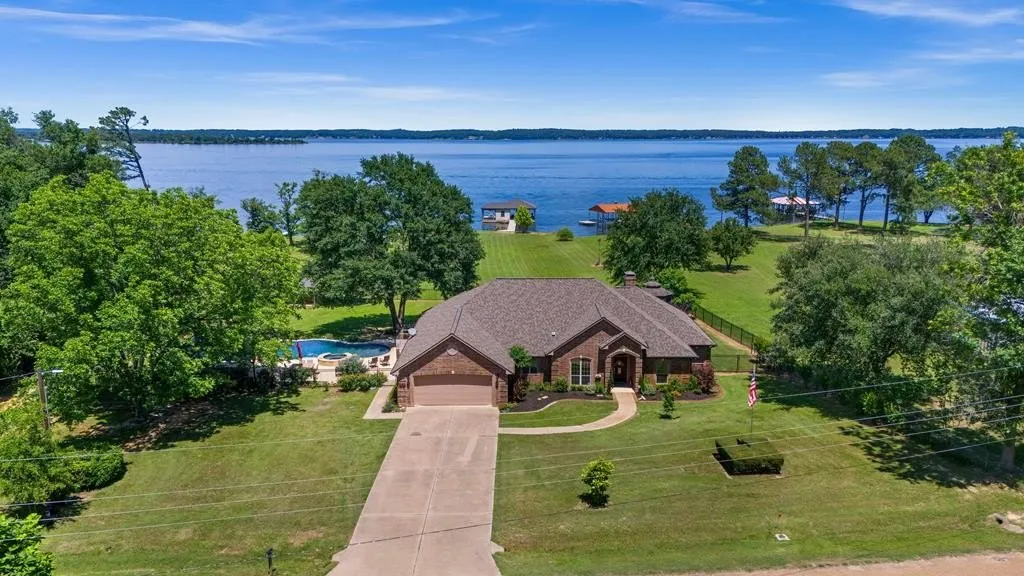 Your private waterfront oasis awaits! Enjoy stunning open-water views from your own backyard paradise, complete with new gunite pool/hot tub, outdoor kitchen, and expansive patio area, perfect for entertaining or relaxing in style. Swim while overlooking the peaceful lake, or take advantage of the new boathouse, which includes an electric boat lift, dual jet ski lift, and a paddle boat/kayak ramp, open deck, covered area and enclosed room with bar opening. Newly installed bulkhead adds both beauty and functionality to this exceptional property. Inside, the home features a warm and welcoming stone wood-burning fireplace in the family room, a formal dining room, office, a cozy breakfast nook, and a breakfast bar for casual meals. Whether you're hosting summer parties, enjoying peaceful sunsets, or boating across Lake Palestine, this home is the total package for lakefront living.