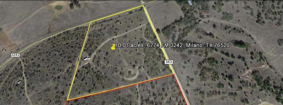 From Milano go N. on FM 3242 6.5 miles to property on right at corner of FM 3242 and CR 343.