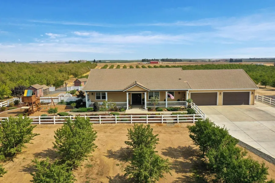 Incredible turn key 10 acre ranchette within Brookland Farms. This is one of the exclusive high end areas in the Central Valley. This Beautiful home has 3587sf, great room concept, 4 bedrooms, 3 full bathrooms, office, separate large living area with additional room and full bath off of mudroom and kitchen. The large kitchen is perfect for your entertaining cook. Large island and added bar stool peninsula, a ton of cabinets, and pantry. The kitchen and family room look out to the park like backyard that is also an entertainers dream. Side yard has large chicken coop and garden area. For the farmer in you, there is 8.5 acres of 6 year old Independence Almonds. New 40' X 60' shop with 16' wall and has two 14' roll up doors. Shop is also preplumped for a full bathroom. There is also a livestock corral with a 12x20 shade cover. Solar is owned. There is simply too much to list and is a must s...