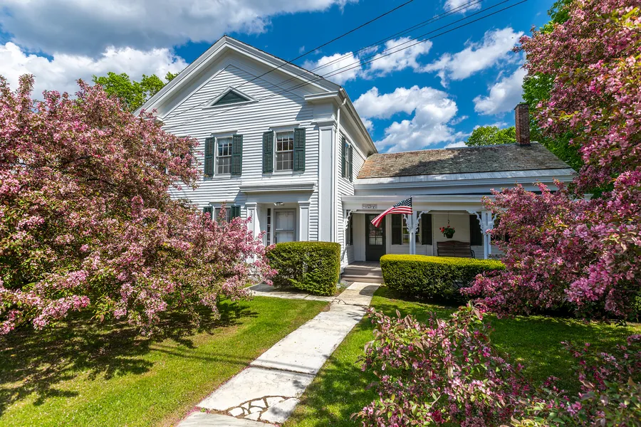 Spectacular Estate of Judge Nathan Bottum, Circa 1847 Greek Revival home & massive 3 story Post & Beam barn on 10+ acres of rolling pasture. This meticulously maintained property offers an income producing home retail shop and large Apt/Airbnb OR may creatively accommodate several additional bedrooms! Green pastures straddle the Clear Brook, feeding 2 ponds. Historically famed but without the restrictions, the handsome architecture is noted for a spacious circular floor plan: from the foyer north, a formal living room opens to a dining room, a swinging door welcomes you to an eat-in kitchen, laundry, and private south-facing screened porch w/deck surrounded by lilacs, hydrangea and apple trees with views of the Green Mt???s. Stunning wide plank floors flow thru the entire home. Off the family room; the south wing offers a 2nd westerly sitting porch, convenient office and a lovely large b...