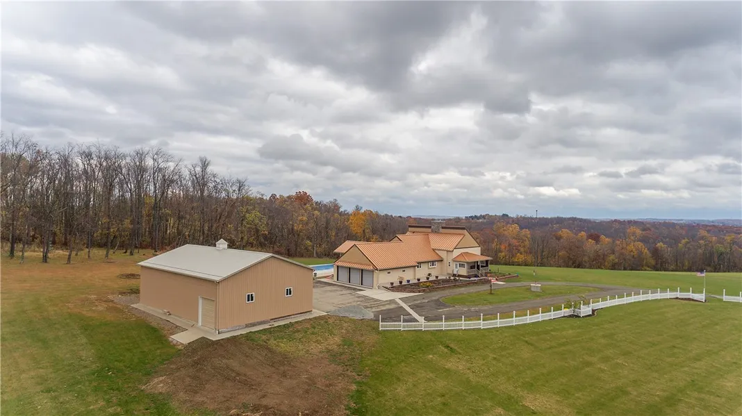 If you are looking for 10 acres with a view, then look no further. Be the host of every family gathering on top of this hill off Jefferson Ave in a beautiful 4200+ sq ft home, with a newer Standing Seam Metal Roof, an in-ground concrete pool, and a 40X60 detached garage for your boats, campers, cars, trucks, tractors...or if you just want some luxury when you're sent to the doghouse. Once you enter the home, you'll fall in love with the 14 foot kitchen island, accented by Amish Custom built Hickory cabinets, formal dining room, a large First Floor Master Bedroom along with a first floor laundry room. All of the details are well thought out in this exquisite home, from the 2 newer furnaces, newer air conditioning unit, to the Rheem (lifetime warranty) hot water tank. The only regret you may have is letting someone else be the new owner. There are so many amazing details to this perfect ho...
