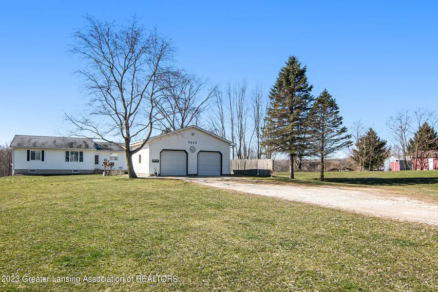 MUST SEE COUNTRY LIVING AT ITS BEST, all located in Charlotte! Check out this meticulously maintained - 1 owner, 3 bedroom, 1 bath open concept home on 10 BEAUTIFUL ACRES! This home has so much to offer with its spaciously designed floor plan, fantastic deck that wraps around three quarters of the home, detached heated and oversized 2 car garage, 28 x 38 pole barn for your toys, sweet custom-built chicken-coop, and plenty of sheds for even more outdoor storage. Don't forget the full walk-out basement just waiting to be finished to your specifications. If all this weren't enough, the seller is willing to leave behind the John Deere 316 Tractor to help maintain the trails and is providing a 1-year America's Preferred Home Warranty for your peace of mind! All dimensions are approximate BATVAI. Do NOT miss out on this one, schedule your showing today!