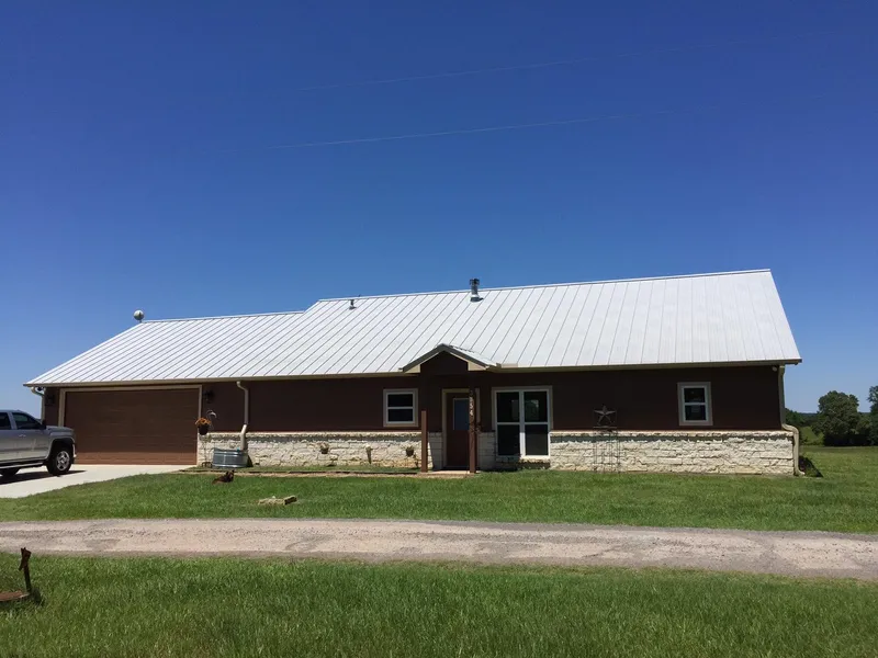 Beautiful 2 bedroom, 2 bath custom built home on 10 acres in Leona. Perched up on top of a hill, sits this wonderful ranch-style house with excellent views. The house is only two years old and was built with great craftmanship. The bedrooms are spacious and the master shower is like something from your dreams. There is an attached 2-car garage with huge storage room on the back. The property is beautiful pasture with scattered oak trees and a nice pond. There is net wire fencing that is great for having livestock. This is an exciting opportunity to own property in the highly sought after Leona area. $295,000.