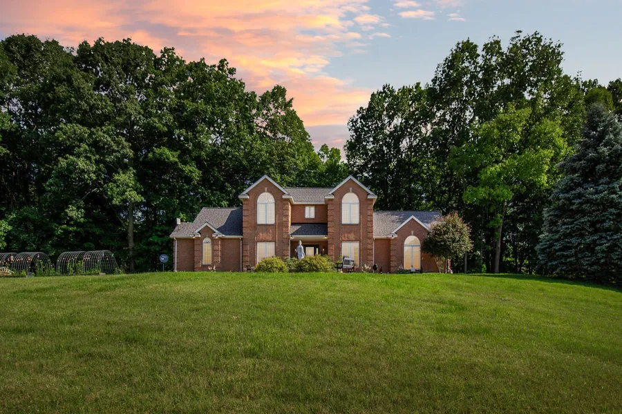 Four bedroom/3.5 bath colonial with 1st floor master suite including a gas fireplace, and screened balcony overlooking the peaceful woods/wildlife. Open kitchen with walk-in-pantry, 1st floor laundry. Situated on a private road on over 10 acres with circle drive and gorgeous water feature to welcome guests. Home recently converted from propane to natural gas. Finished, walk-out basement leads to patio or up to the composite deck. Newer 75-gallon HWH/furnace, roof approximately 10 yrs old, 1000 cu ft septic tank. Tons of storage throughout the home! Whole house generator, 1 year home warranty from Americas Preferred Home Warranty included with sale. All appliances currently in home included.