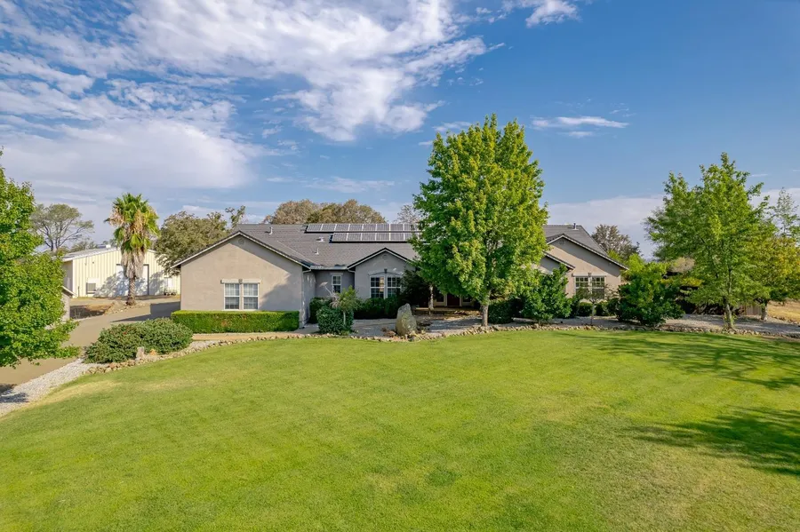 Beautiful custom built home inside the gated community of Vista Del Oro. 10+ Acres In Upscale SubDivision. Located Just Off Hwy 20 In Browns Valley. This home has 3Br. 3Ba, office could be bedroom 4, and an oversized 2 car garage. The home is perfect for entertaining, raising a family or just retiring to the tranquility of the Sierra Foothills. Located walking distance from the Yuba River. Large open kitchen, with dining nook and family room, formal dining and living, River Rock Fireplace.. An additional bonus playroom pushes the usable square footage to over 3,200. The private backyard has a ground pool, stamped concrete and a great view of the Yuba foothills. A 1600 sq.ft. steel Metal Butler Style 40x 40 Insulated Shop has an enclosed air conditioned office, built in 2006, just perfect for a small business operation or general storage. The property features BVID fully irrigated landscaped front yard. The bass pond has an adjacent trailer pad. Home has 12kw of solar power.