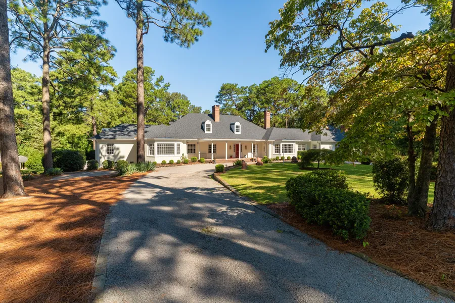 Elegant Equestrian Estate in the heart of Southern Pines Horse Country! The sprawling ranch style home offers character that is absent in newer construction. The home features soaring ceilings, multiple living & dining spaces, a library, space for wine cellar in basement, and an amazing screened in porch with an outdoor kitchen! The primary suite is on the main level and offers an expansive bath, closet area, and a home office. Upstairs you'll find 3 large bedrooms with ensuite baths and ample storage. The home is privately located at the back of the property, down a tree lined drive and surrounded by beautifully manicured lawns and fenced pastures. The 6 stall, center aisle barn offers spacious stalls, a tack room, a feed room, interior wash stall, 'guest quarters' with bath, and large storage bays perfect for equipment or carriages! There are 4 separate paddocks and two outside Run In sheds. There is no shortage of garage space on this farm! The 10 bay detached garage and workshop space is the perfect home for that car collection! Detached storage for RV or horse trailers and equipment is also available. This is a prime spot for an equestrian! The farm has direct access to the main section of the Walthour-Moss Foundation and is just a short hack from the Moore County Hounds Kennels. Downtown Southern Pines is just 1.5 miles away for fine dining, boutique shopping and nightlife! Pre-listing home, termite and septic inspections were completed and a full list of repairs/improvements are available upon request!