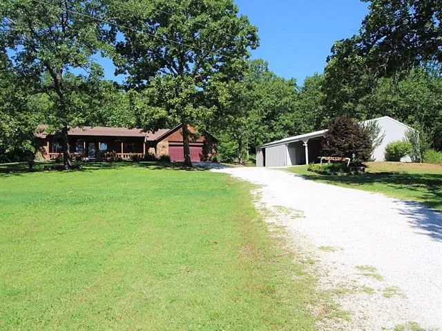 Beautiful Rustic Style Home on 10 Acres outside of Gore. This home is within 7 miles to Lake Tenkiller. Stone exterior, covered front and back porch, detached shop w 3 car carport, split floor plan, large living area and fireplace. Roof is only 1 year old.