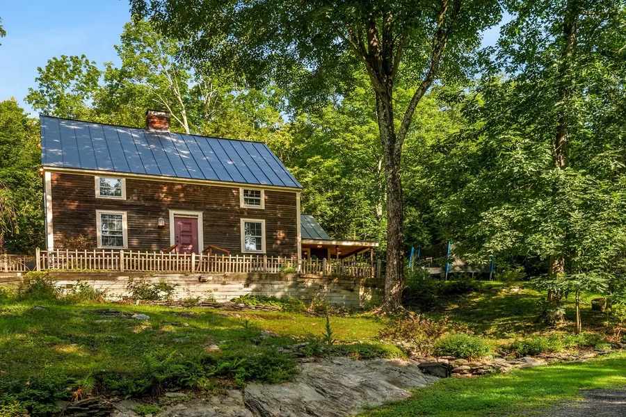 Discover serenity in this secluded 3-bedroom haven nestled on over 10 acres of pristine woodland yet minutes to town! Stunning exposed beams and wide plank wood floors guide you through the living room, creating a warm ambiance enhanced by the cozy Vermont Castings woodstove. The kitchen, adorned with new appliances, is filled with rustic charm with red slate floors, gorgeous fixtures and a unique center island which once was a ticket counter at the Rutland Railroad. Upstairs, three bedrooms offer comfort, including one with bonus space for a walk-in closet or playroom. Step onto the deck and indulge in relaxation in the new hot tub, surrounded by nature's tranquility. Property features a large detached two-car garage with heat, the upper level of which is a blank canvas for your dreams - envision a studio, workspace, or extra living space. Another highlight is the artist's studio that c...