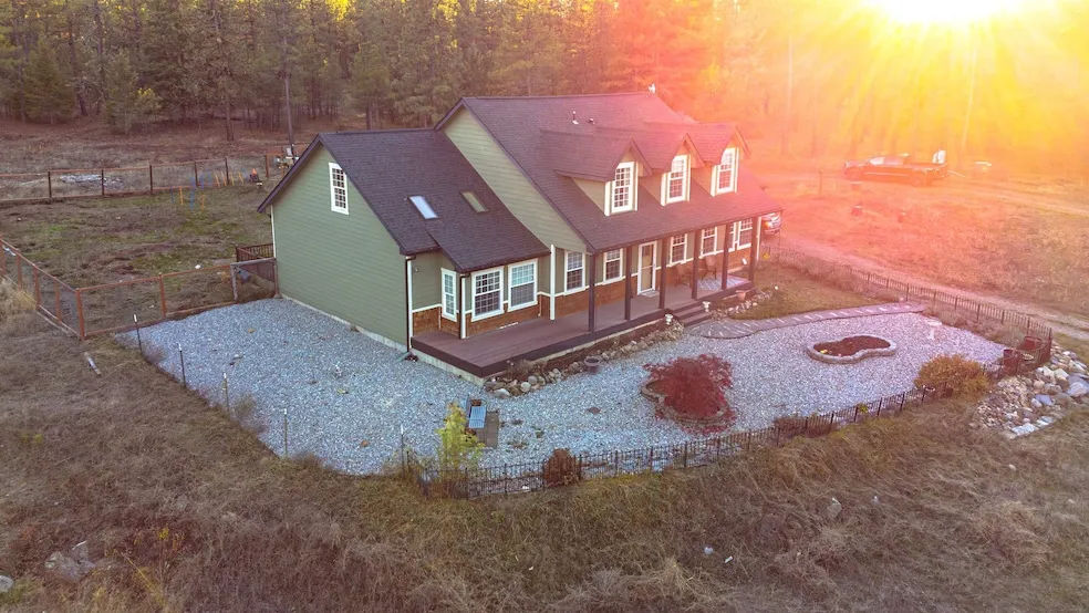 On 10 private acres in Nine Mile Falls, this 5-bed, 4-bath home with an office blends country quiet with everyday ease. Skylights brighten a vaulted great room centered on a classic wood-burning hearth. Main-level living includes the primary suite and nearby laundry; the primary bath has double sinks, a new soaking tub, and an oversized walk-in shower. Cook and host with ease: island seating, built-in pantry, eat-in nook, and a separate formal dining room. Upstairs bedrooms share a Jack-and-Jill bath. Outside: fenced yard, greenhouse, raised beds, and chicken coop. A 21.5 36.5 ft three-car garage offers generous storage; dual 200-amp service (400A total). Efficient systems: a new minisplit that heats and cools the whole home, plus electric resistance heat and the wood fireplace. Reliable utilities: 15 20 GPM well (~67 ft), septic pumped 2024, county-maintained access road, and Nubeam installed with Starlink available. Exterior painted in 2025. Minutes to The Cove and Lake Spokane. Ask for the pre-inspection.