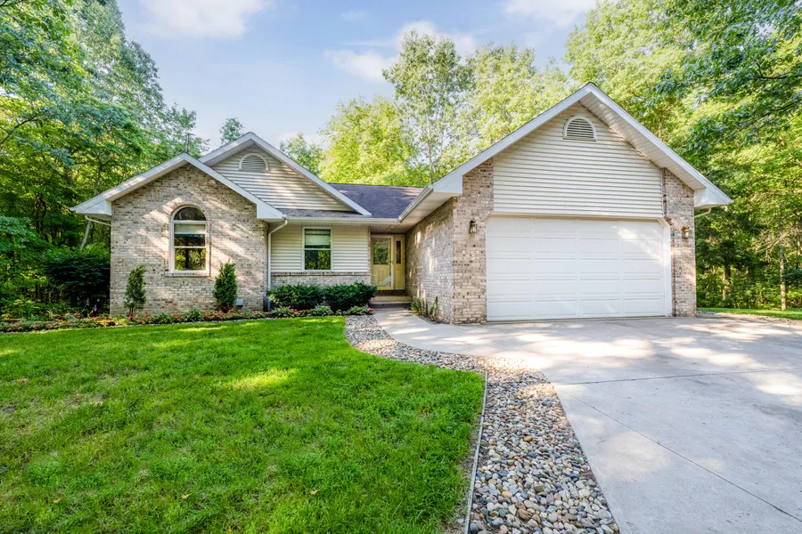 This uniquely striking home located in harbor country perfectly tucked away for ultimate privacy at the end of a private treelined road; situated on just over 10 beautifully manicured acres. In addition the property offers trails and wildlife as well as a barn to host your own furry friends. Home presents an eat in kitchen, large 480 sq ft deck accessible from the kitchen and bedroom and a wood burning fireplace. Perfect for spending quality time with family and friends. Main floor features 3 bedrooms and 2 baths while the basement has a separate laundry/utility room, full bath, walkout and two additional rooms with various potential usages. Not only will you be able to enjoy peace and solitude but you'll still be within 5 minutes of downtown Sawyer and I90. Enjoy the views today!