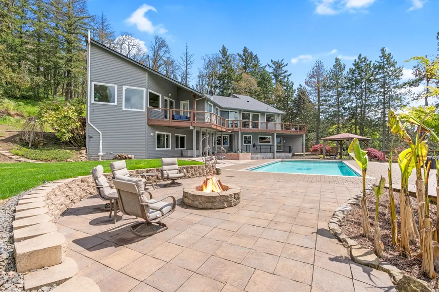 If you think you have seen it all, think again. Step away from the ordinary and into this one-of-a-kind custom compound with a beautifully remodeled main house, two outbuildings both with two bedroom apartments, and separate storage buildings all sitting on ten pristine acres in the rolling hills of the Stafford hamlet in West Linn.