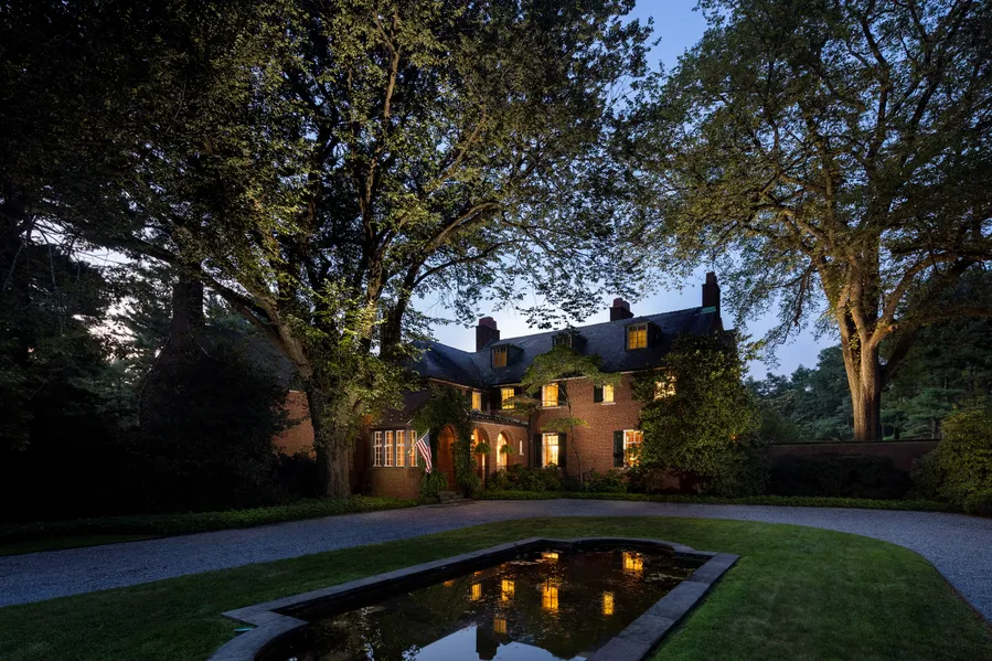 "Preference" is a spectacular Georgian-style brick Manor House built in 1926 by the distinguished architect Thomas Hasting as a wedding present for the granddaughter of Charles Pratt, a noted American Industrialist. The secluded Estate sits on the second-highest elevation of Long Island's Gold Coast in a tranquil setting. A long and winding driveway leads past manicured lawns, specimen trees, flowering bushes and perennial gardens. Interiors have high ceilings, grandly-scaled rooms and elegant architectural details. First Floor: dramatic entry foyer with sweeping staircase, over-sized paneled living room with fpl, library with fpl, sunroom, formal dining room, large eat-in-kitchen, and guest bath. Second Floor: spacious primary bedroom suite with dressing room/office and two baths. 5 additional bedrooms and 6 baths. Third Floor: 2 large bedrooms and 1 bath. Oval swimming pool, tennis court, and 3 bedroom guest cottage. INCLUDES 5 ACRE BUILDABLE LOT.