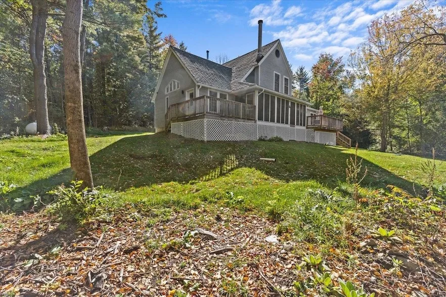 Privacy meets luxury in this unique tucked away property nestled in the hillside of Georgia Mountain. This contemporary-style modified home offers fantastic seasonal views, and with a little grooming, year-round, and is situated on a little over 10 acres. Soak in the oversized tub in the newly renovated Primary Bath suite, have a get-together with family or friends and enjoy a fire, tinker around in the detached two car garage, there's so much that can be done. Other upgrades include a new boiler as well as gutters and leaf guards to keep maintenance at bay. The newly added finished basement space features an in-law suite with both interior and exterior access, and just needs a heat source to deem it completely finished. This area does stay warm in the Winter without one! A screened in deck space ties the wrap-around deck together on both sides of the home, adding even more functionalit...