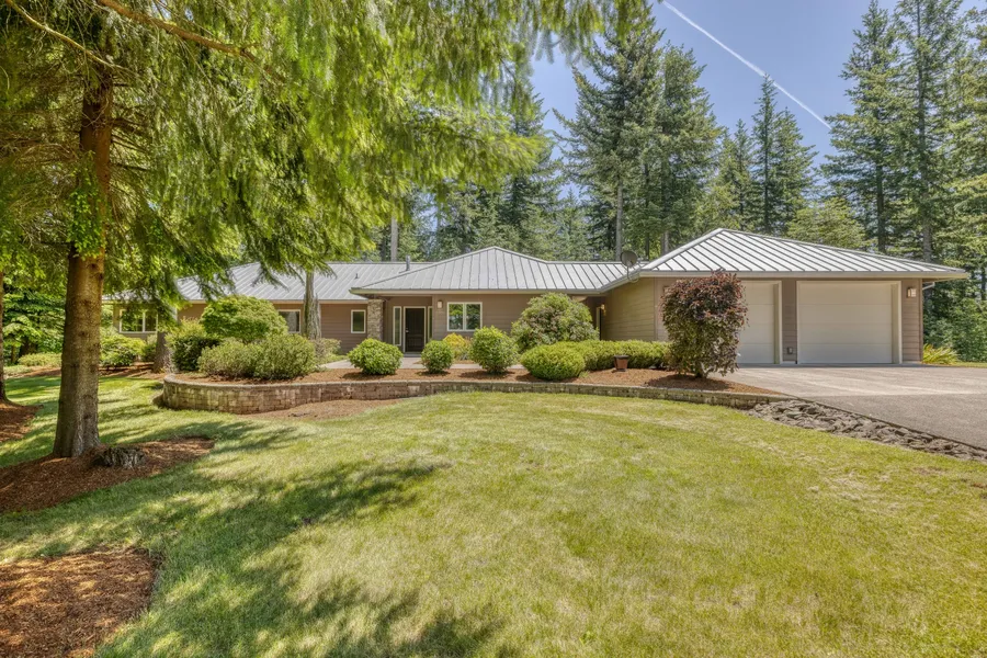 Privacy and serenity await at this 10 acre park like property, surrounded by native trees and sweeping valley views. Drive down a private, paved driveway to this tranquil 3 bed, 2 bath sprawling retreat that was carefully constructed and thoughtfully planned with all primary living and bedroom spaces on the main floor. Enter this home to be enchanted by a large open living room with grand fireplace, hardwood floors, custom Western Big-Leaf Maple millwork throughout. Windows host plenty of natural light, gourmet kitchen boasts stainless steel appliances, cook island, gas appliances, granite counter tops space wonderful for entertaining! Large Primary Suite with custom bathroom and oversized walk in closet. Two additional spacious bedrooms, and fully insulated basement ready for your finishing touches! Enjoy evenings on an inviting covered patio overlooking a gorgeous landscaped yard. Oversized two car garage with ample storage, 3 car shop equipped with separate 100amp electrical panel, several 220volt electrical outlets and 50amp electrical welder outlet, workshop space, bathroom and storage! RV Parking and clean outs on site! Just 35 minutes to PDX, look no further for your very own secluded oasis.