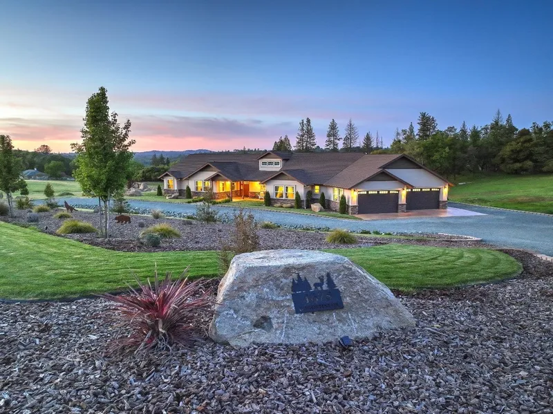 Exceptional craftsmanship and unbeatable value at under $310/sq ft - far below today's building costs! Enjoy 4,287 sq ft of elegant, single-level living on 10.29 peaceful acres in the heart of Sierra Foothills wine country. Whether you dream of horses, a boutique vineyard, or just the serenity of wide-open views and starry nights, this property delivers. Custom-built in 2019 to a very high standard, the home features a massive, light-filled chef's kitchen with a Wolf gas cooktop, Wolf double ovens, Subzero fridge, dual dishwashers, Blanco kitchen sinks, and polished Quartzite counters, all anchored by the impressive satin finished Quartzite topped 5'x11' island - truly stunning in look and feel. Huge rooms and quality engineered hickory hardwood flooring throughout, a wine storage room, and spa-like bathrooms with designer tile and radiant heat in the primary suite. Advanced systems incl...