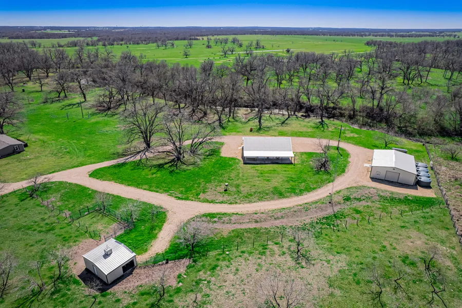 This rural home is perfect for those looking for a peaceful retreat away from the hustle and bustle of city life. Located on 10.29 acres, this spacious home features an open floor plan with stained concrete flooring throughout. The large living area is perfect for entertaining or relaxing with family and friends. The split bedroom floor plan offers privacy, with the primary bedroom featuring a walk-in shower, single vanity, and a nice size closet. The kitchen boasts an extended island with granite counters, gas cooktop, built-in oven, wet bar with wine cooler. One of the highlights of this property is the huge back porch facing the San Gabriel river. This year-round live-water feature provides opportunities for fishing, kayaking, swimming and relaxing under giant century-old pecan trees. If you enjoy working on projects or have hobbies that require extra space, there is a large 40x60 metal shop with concrete floors and dual roll-up doors. There are also four storage tanks to catch rainwater runoff. There is also a livestock barn as well as an enclosed poultry coop. The north area where the barn sits is cross fenced and ready for cattle or horses. An ag exemption is already in place to help keep taxes low on this beautiful piece of land. An automatic gate along the private road maintains privacy while providing easy access to Rockdale (10 minutes), Taylor (30 minutes), and even Austin (less than an hour). If you're looking for country living at its finest with modern amenities close by, then look no further than this stunning rural home.
