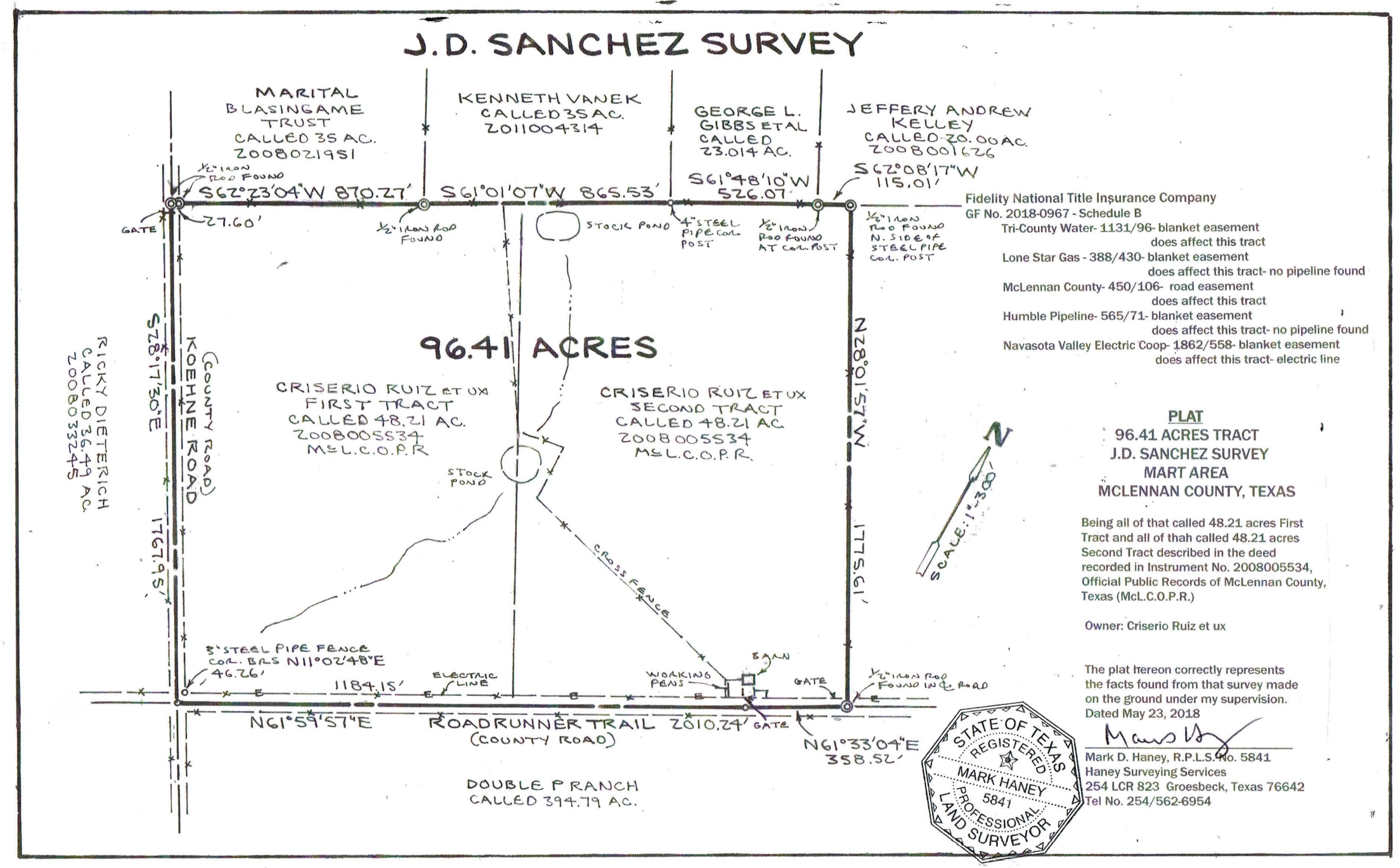 Search 31.50846, -96.8766 in Google Maps for Directions to the property. This property has been corner-staked and line-staked making identification of the property outline easy to see. Copies of the Survey Plat Map are available upon request.