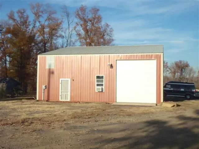 1,440 sq. ft. metal building! 2 RV electrical hook ups, city water, not hooked up, over 600' of hwy 64/Main Street frontage, one 14' tall metal building, 12' over head door, 2 man doors, 2 sliding doors, RV size carport side shed 46'X12', Patio with cover 8'X12', just like new building. Floors are concrete, acid stained beautiful floors, survey being done, land has filled in nicely, very level and buildable. Wiring in building is conduit.(112481)