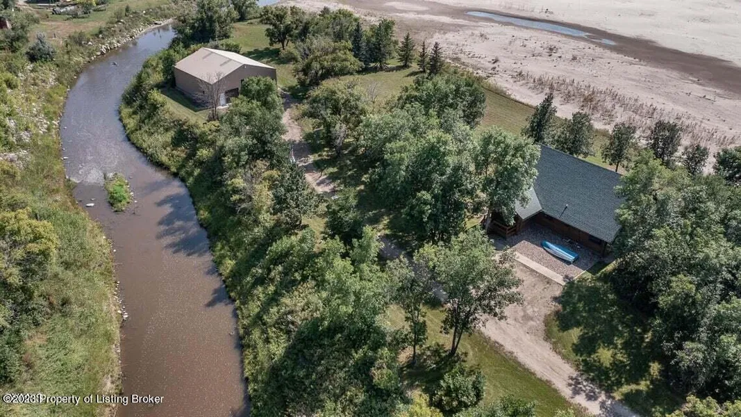 WELCOME TO TURTLE CREEK LODGE! FIRST TIME OFFERING - APPROXIMATELY 1,650 FEET OF RIVER FRONTAGE. BEAUTIFUL CUSTOM LOG HOME ON THE MISSOURI RVER WITH 10.34 ACRES AND BREATHTAKING VIEWS! Follow a beautiful private drive leading to this secluded home with sandy beaches and river property in front and TURTLE CREEK to the east, making great fishing all around! Built in 1997, and shows like new construction, featuring soaring log beams, open concept living, mud room, main floor laundry, 2 bedrooms, bath, and a great sunroom to watch the evening sunsets. The upper level offers additional sleeping quarters in the loft as well as one additional bedroom and bathroom. Other property features include a 42 X 48 shop with a designated heated workshop area, artesian well, situated on a private wooded lot with trails. Located only 30 minutes to Bismarck. THIS HOME AND SHOP IS BEING OFFERED COMPETELY FUR...