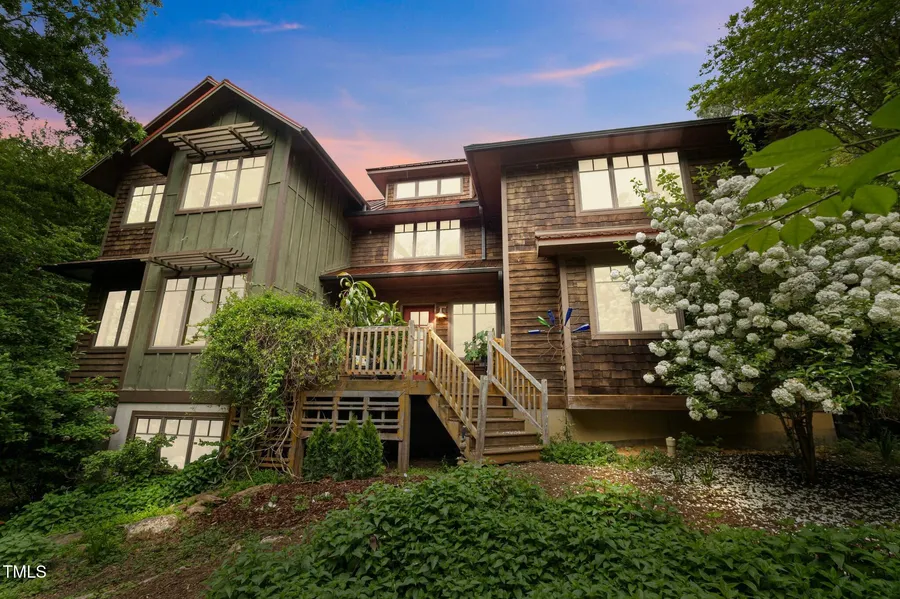 Welcome to your serene retreat just minutes from Downtown Hillsboroughthis stunning custom-built passive solar home sits on 10.35 acres of picturesque land, thoughtfully designed for year-round comfort and sustainability. Perfectly positioned to face true South, the home harnesses the sun's energy through a smart combination of concrete slab floors, strategically placed windows, and awningskeeping it warm in the winter and cool in the summer. The vibrant red metal roof adds a bold architectural statement and superior durability, beautifully complementing the cedar wood exterior. Inside, you'll find 3 spacious bedrooms, 2.5 bathrooms, and a full walk-out basement featuring a finished office, plumbing ready for an additional bathroom, and ample storage space with Superior Walls construction. The heart of the home lies a one-of-a-kind open kitchen and living area. The kitchen features elegant black soapstone countertops, ambient lighting, and serene views, centered around a striking antique kitchen island with a rich historyrepurposed from a vintage fabric mill and equipped with a built-in power outlet. The adjoining living room is filled with natural light and scenic vistas, anchored by a cozy wood-burning stove capable of heating the entire home. For added comfort and efficiency, dual HVAC systemsnew in 2024 and 2025-ensure added convenience. Throughout the home, reclaimed materials lend warmth and character: wood flooring from a historic Durham tobacco drying shed; hand-hewn beams, railings, and trim from trees on the property; and a distinctive vanity crafted from a Duke University chalkboard and antique gramophone stand. Additional upgrades include new interior paint and new carpet (2025), adding a clean and modern touch to this uniquely crafted home. Outdoors, the property offers a seamless extension of the home's intentional design and harmony with the land. A tranquil creek winds through the grounds, complemented by mature blackberry bushes and fruit trees-apple, cherry, peach, and pear. The property also includes 3 acres of fenced pasture, a 4'' cement pad for basketball half-court, and a small barn with a chicken coop. This extraordinary property embodies a rare blend of rural tranquility, elegant sustainability, and elevated daily living. Unwind and take in the surrounding beauty from the screened porch, front rocking chair porch, or west-facing porch for spectacular sunsets. All of thisless than 5 miles to Eno River Farm and Broken Spoke Farm with fresh produce, homemade ice cream and events; and less than 10 miles from downtown Hillsborough's farmers market, Weaver Street Market, charming shops and restaurants. This is more than a homeit's a lifestyle of quiet luxury and natural simplicity. Embrace comfort, inspired craftsmanship, and peaceful connection to nature. Come experience it for yourselfschedule your showing today!