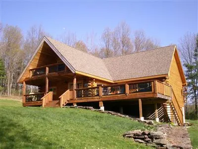 Majestic New Log Home...on 10.39 acres with breathtaking views of the valley and the hills beyond. This is a quality log home, the shell is a Finger Lakes Log Home. The interior finish work is impeccable. The list of amenities includes: hardwood floors, cathedral living room ceiling, gas fireplace, many tongue & groove walls & ceilings, Kraftmade cabinetry, solid surface counters, 5 burner gas stove, ceramic tile kitchen & bath floors, 3 sets of french doors, walk-in closets, 23x8 balcony off master, 1st floor laundry. The basement level offers an above grade guest bedroom and has a large unfinished bath (the plumbing is in place)a family room area and an exercise area. This level has a french door leading to the front yard. The house has wood (outside wood furnace)& propane heat. Outside there is a wrap around deck overlooking the village of Unadilla (24x21 and 24x8)with custom iron work, pretty stone walls, raised vegetable beds and a 44x30 pole barn/garage. Call today and come home!