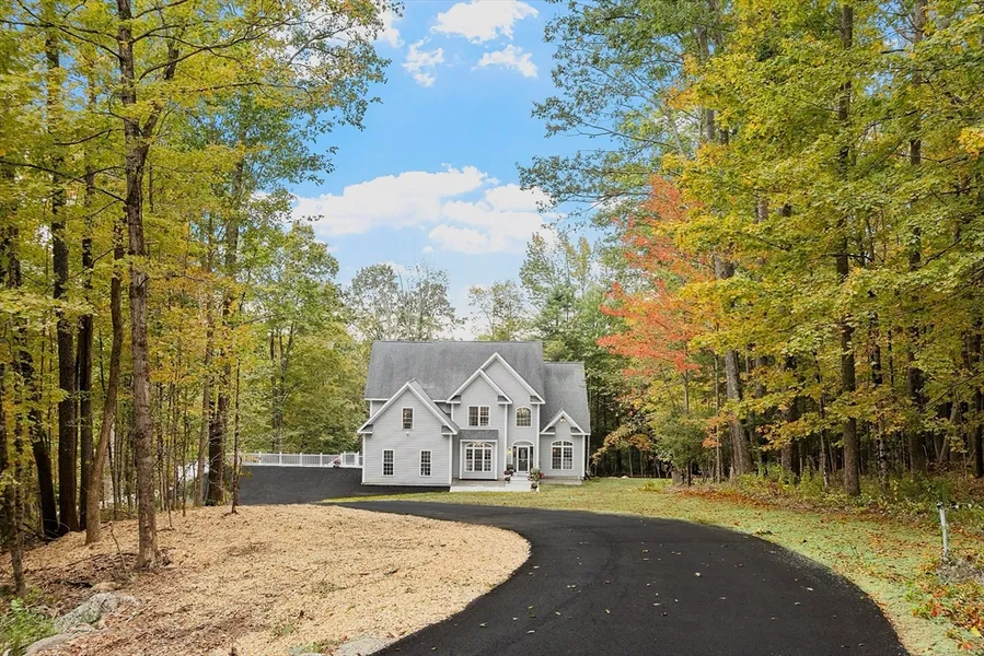 Experience timeless New England charm and total privacy in this exceptional 2,995 sq. ft. Colonial, nestled on 10 wooded acres and bordered by over 70 additional acres of forest. A winding paved driveway leads to a stunning residence offering refined craftsmanship and elegant living. Inside, enjoy 4 spacious bedrooms, 2.5 baths, an office, and a laundry room-all enhanced by marble, travertine, hardwood floors, and crystal chandeliers. A dramatic two-story family room with soaring windows fills the home with natural light and flows into formal living and dining areas, perfect for entertaining. The chef's kitchen boasts Viking appliances, rich shaker cabinetry, a walk-in pantry, and a cozy breakfast nook with serene views. The expansive primary suite offers a peaceful retreat with upscale finishes. Outside, a classic patio invites al fresco dining amid nature's beauty. This private estate offers luxury, space, and seclusion-just minutes from town, yet a world away. Open House 9/27 1-2:30