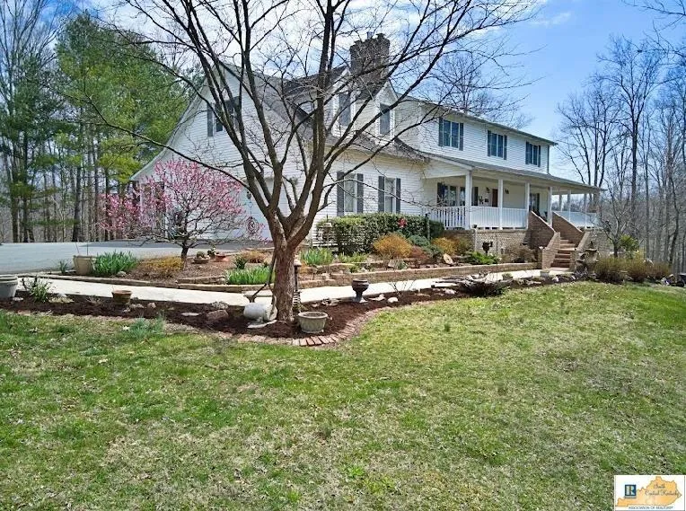 This is your chance to own what many have called, the prettiest place in the county. A paved, circular driveway leads you to a custom-built, 2-story house with wrap around porch and finished basement. This 5-bedroom, 3 bath home is located 3.5 miles from Sulphur Creek Marina on Dale Hollow Lake and sits on 10.5 beautiful acres. As you enter the main floor, you see real hickory hardwood and tile floors, granite countertops, custom oak cabinets and a kitchen island. The living room has a sealed gas fireplace. There is also a large master suite and laundry on the first floor. Upstairs are 4 bedrooms as well as a bonus room. The walkout basement has tiled floors, a family room, office, and a large bathroom with jetted tub. Also in the basement is a safe room with concrete walls and ceiling. Quality construction shows in the Anderson windows, Pella French doors, beautiful trim, solid wood doors, and rafters between each floor for added strength and sound proofing. There is an attached 2-car garage on the main level and another large attached garage on the basement level. The home also includes a central vacuum system. Outside, one will find a 60X64 building with 3 tall doors with automatic garage openers (a great space for boats/RVs). The fully insulated building also has a full bath & washer and dryer hook-up. Included with sale: Stepleton pool table, industrial shelving (in building), kitchen appliances, porch swing, bench at the waterfall, and a chainsaw carved bear.