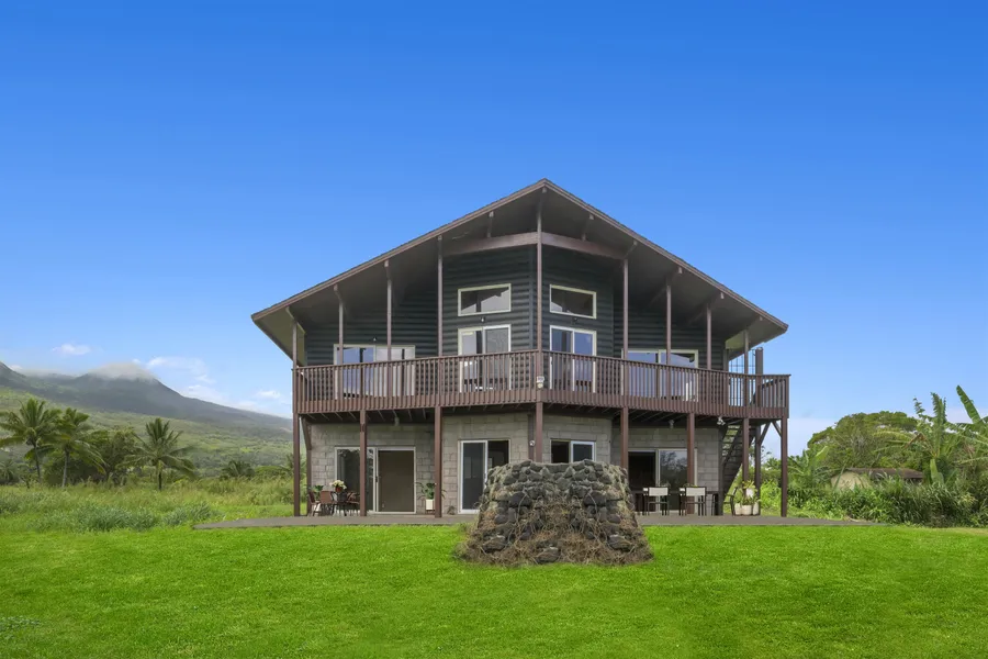 Welcome to 10.5 acres of potential in the heart of the Hana. This stunning property offers a unique opportunity to live and farm in paradise. Set back from the main road, the home provides both privacy and tranquility as you enter through the gated entrance and follow the driveway to the charming two-story, log-sided residence. The home is thoughtfully divided into three distinct living areas, offering incredible flexibility and potential. The upper level features two bedrooms, two bathrooms, a great room, and a kitchenperfect for relaxing or entertaining while enjoying the peaceful surroundings. The lower level is a separate living space with its own full kitchen, master bedroom, and living room, ideal for guest quarters or more private accommodations. In addition, a studio with a lock-off entrance, galley kitchen, and bathroom offers even more versatilityperfect for a home office, art ...