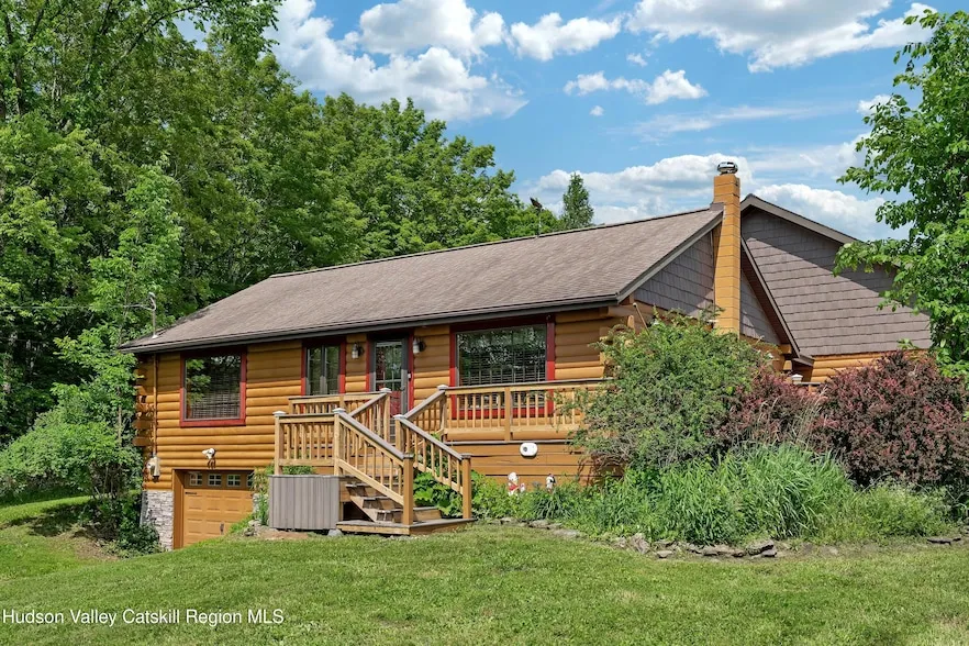 Discover Your Ultimate Country Retreat: Fully Furnished & Ready for Enjoyment! Nestled on 10.5 picturesque acres along a scenic country road, this exceptional 4-bedroom, 3.5-bath home offers the perfect blend of rustic charm and modern comfort. Sold fully furnished, this property invites immediate relaxation and enjoyment, whether as a private family sanctuary or a lucrative Airbnb investment. Step inside to a welcoming natural wood interior, where vaulted ceilings soar above an open-concept living and dining area. A captivating wood-burning fireplace and abundant skylights create a warm, inviting atmosphere filled with natural light. The generously sized eat-in kitchen provides ample space for culinary endeavors and casual dining. Comfort is paramount with two luxurious primary suites, ensuring privacy and convenience for residents and guests alike. The finished basement expands your living space significantly, featuring a versatile game room, a dedicated office, an additional comfortable living area, and a full bath - perfect for extended family, entertainment, or remote work. Outdoor living is elevated by a magnificent tiered deck, complete with a fully equipped outdoor kitchen and a charming gazebo, ideal for al fresco dining and entertaining. Practical amenities include a convenient garage located under the house, an efficient exterior wood furnace for supplemental heat, and a new 2-zone heating and AC system for year-round comfort. Further enhancing peace of mind are a whole-house water filtration system with UV light and a robust whole-house generator, ensuring uninterrupted comfort and utility. Centrally located, this property offers easy access to the renowned ski resorts of Windham and Hunter. Presented in excellent condition, this is truly a must-see opportunity for those seeking a turnkey country escape.