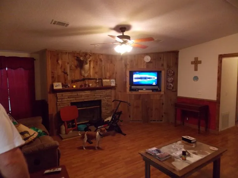 Lovely 10 acres with recently remolded double wide, open floor plan, fireplace, outbuilding and great location.