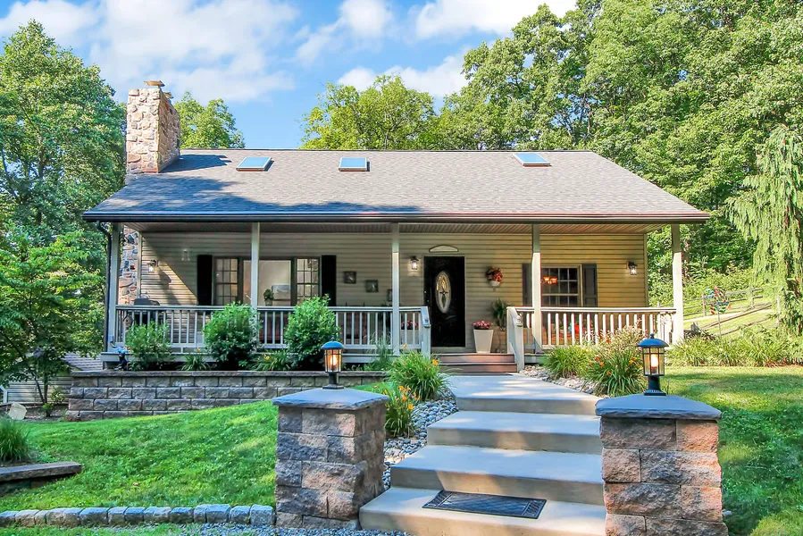 Don't miss out on this gorgeous updated custom-built mountain home! The beautiful 3-bedroom, 2.5-bathroom home sits on 10 and 1/2 mostly wooded acres, giving you lots of privacy. The home is truly move in ready, with many updates including updated kitchen, new paint, and new carpet and tile flooring. Custom features throughout, including wood stained ceilings with exposed beams. Step inside to see the 18-foot cathedral ceilings with skylights in the spacious living room, also featuring a stone wood-burning fireplace. New completely remodeled kitchen with solid wood cabinets, granite counters, stacked stone backsplash, new stainless-steel farm sink, appliances, new dishwasher and French doors. The master bedroom on-suite has a skylight, custom hardwood closet system, and attached bathroom with 2 separate vanities, granite counters with large vessel sinks, and walk-in shower. The home includes many conveniences such as in-floor radiant heating in the kitchen and bathrooms, built-in bookcases in dining room, hardwood shelving systems in the guest bedrooms, and guest bathroom has jetted tub and granite counters. The finished basement includes a spacious rec room with cabinets and tile flooring, a large laundry room with front loading washer and dryer, and a half bath. The one-car garage has a new garage door, and extra workshop space. The mechanical systems are serviced regularly and feature a water softener for the well water filtration system, and a high efficiency electric water heater. The outside is just as great as the inside of the home! The gorgeous landscaping and hardscaping around the house gives some clearance from the surrounding woods. There is a garden shed with electric and water, and an extra storage shed on the property. The yard is fenced in with a split-rail fence, and there is a fenced dog kennel as well. Sit on the patio in the backyard to enjoy the fire pit and forest view. Come see this mountain hideaway for yourself! Conrad Weiser schools. Convenient location, close to 422. Schedule your appointment today!